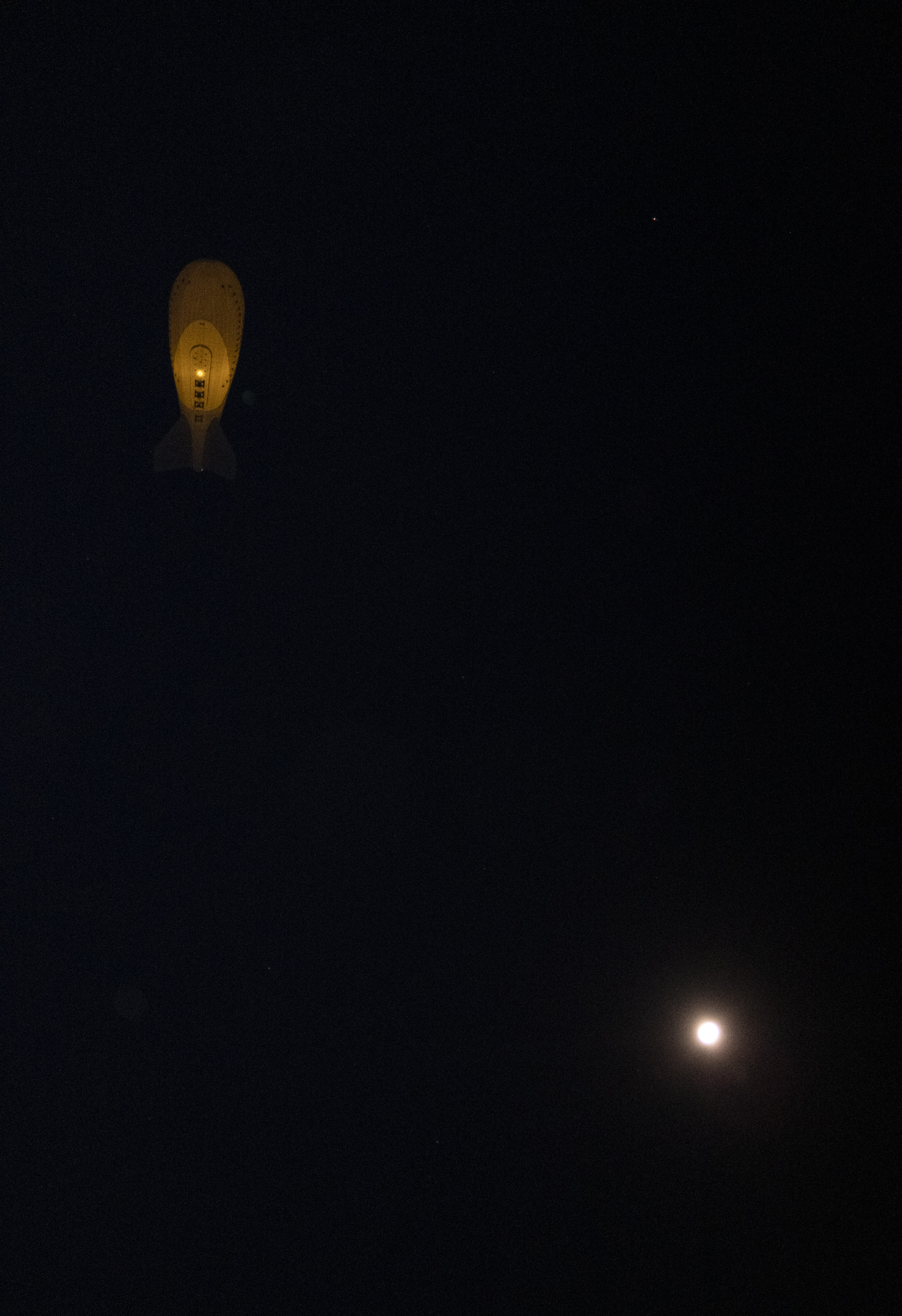 据介绍,执行此次观测任务所使用的浮空艇,是我国自主研发的系留浮空器,长55米、高19米,体积达9060立方米,利用浮升气体的浮力升空,通过地面锚泊设备系缆控制升空和驻空。
