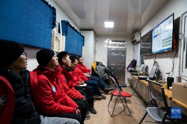 5月15日,科考队员在查看“极目一号”Ⅲ型浮空艇的升空实时数据。